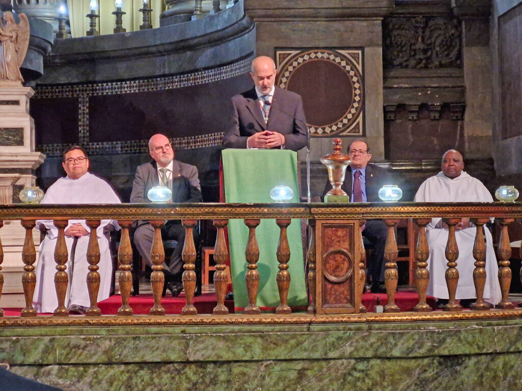 El padre Fermín leyó el Evangelio, y seguidamente el Cardenal hizo la homilía, «que Dios haga de las Cofradías verdaderos faros de Esperanza para la ciudad y la Iglesia de Barcelona, ser testimonios de luz en medio de la sociedad, destacando además la Piedad Popular y las cofradías como auténticas escuelas de vida cristiana».