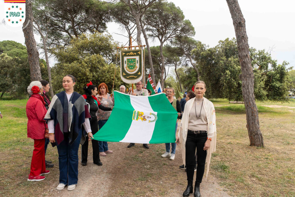 La Federación Andaluza de Comunidades (FAC) celebró el pasado 6 de abril un año más el Día de la Confraternidad Andaluza en el Parque del Hostal del Fum, con danza y cantos rocieros por los grupos coro de Cunit Alegrías del Sur, el grupo de danza de Mariluz “Amanecer” y el coro de la Casa de Andalucía de Tarragona y provincia. Tras la misa rociera se llevó a cabo los parlamentos de Emilio Manuel de la Chica Hayas, presidente de la FAC, y la delegada de la Junta de Andalucía en Cataluña, Concepción Veray. También estuvieron presentes Oriol Lozano, alcalde de Palau-solità i Plegamans, y Mari Carmen García-Calvillo, subdelegada del Gobierno en Barcelona. Finalizados los parlamentos se llevó a cabo la ofrenda floral y homenaje a la bandera de Andalucía con los abanderados de las entidades presentes portadores de las ocho banderas de las provincias andaluzas. El punto y final de la fiesta fue el cocido andaluz que se sirvió a los presentes.